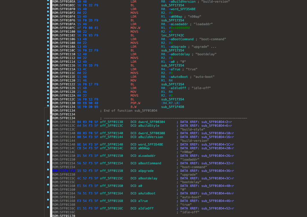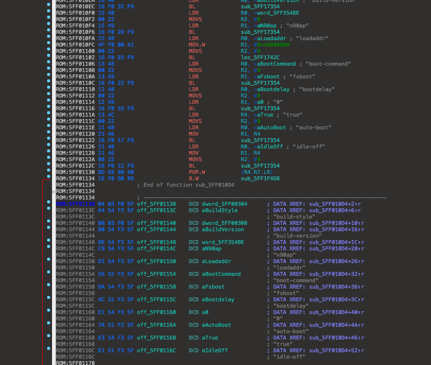 Above is where you will find fsboot. If IDA doesn't show the string references and just leaves them as addresses, click the address