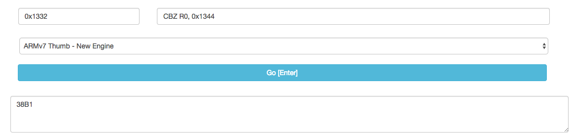 Go to this webpage and change ARM64 to ARMv7 THUMB - New Engine.